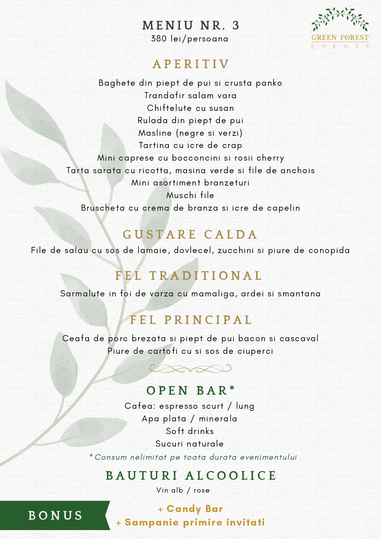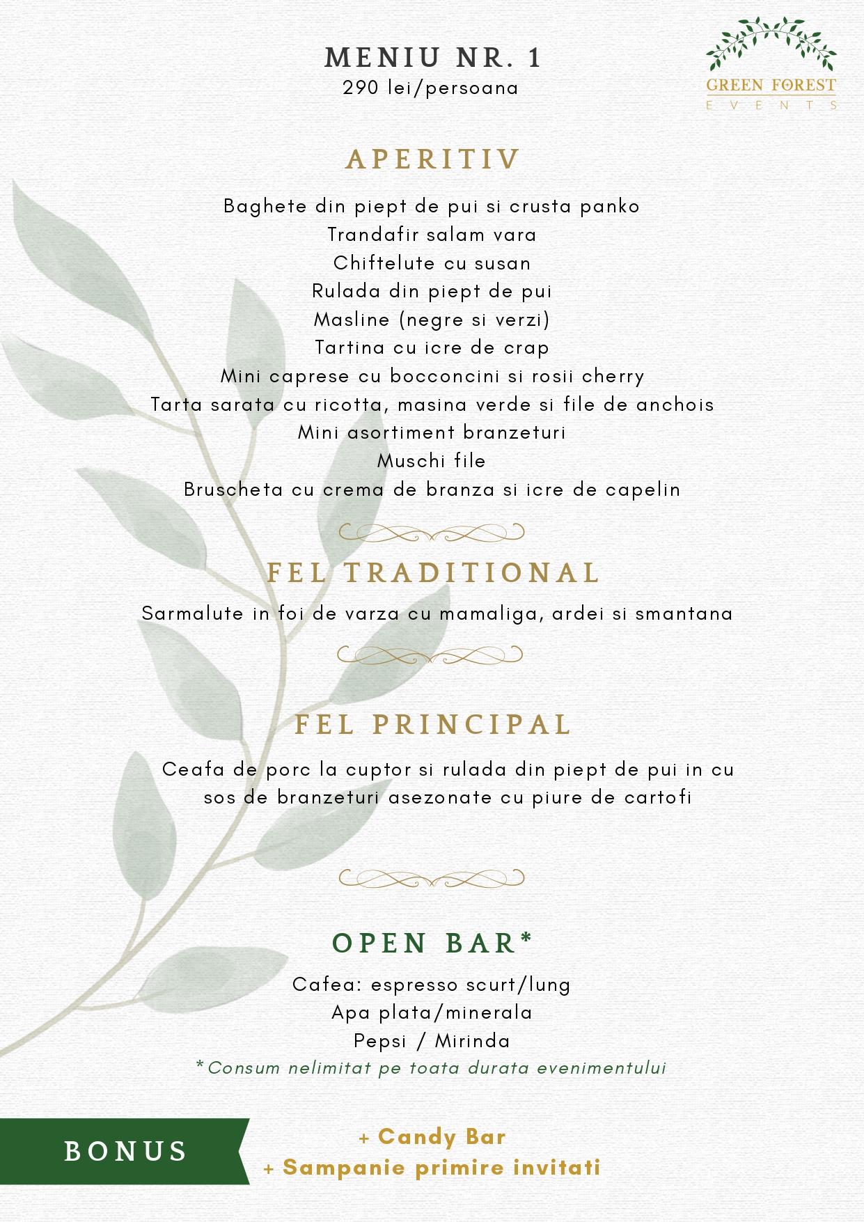 Noi știm că orice eveniment implică timp și mai ales energie, așa că suntem aici, pentru a vă asigura că aceste clipe vor fi de neuitat și că nici un detaliu nu va trece neobservat. Seriozitatea, profesionalismul, promptitudinea, flexibilitatea, precum și partenerii noștri profesioniști sunt un argument solid pentru a alege serviciile Green Forest Events.